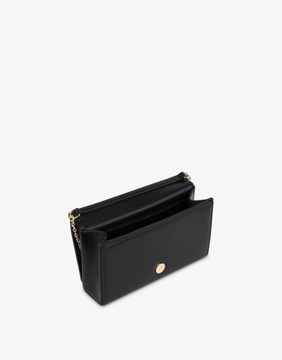 Cuore rosso in metallo con logo signature sul davanti Piccolo logo Lettering in metallo Tracolla a catena Chiusura magnetica Interno foderato con 2 tasche e 6 tasche per carte Dimensioni 22 x 13 x 5 cm