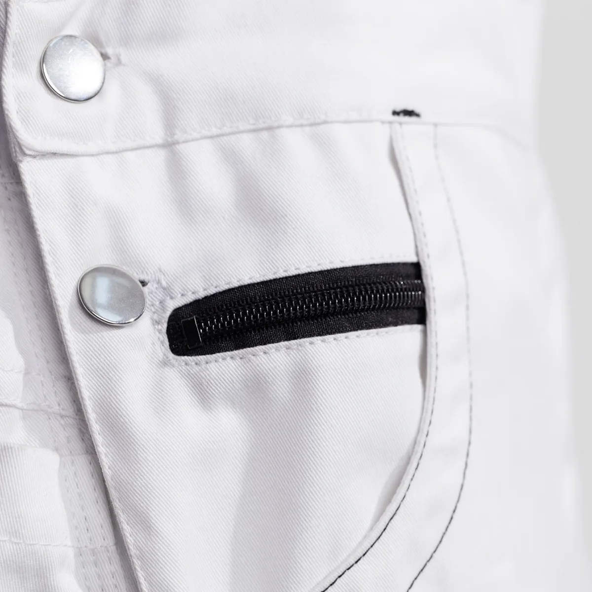 - Adjustable waist: Laterally adjustable with jeans buttons
