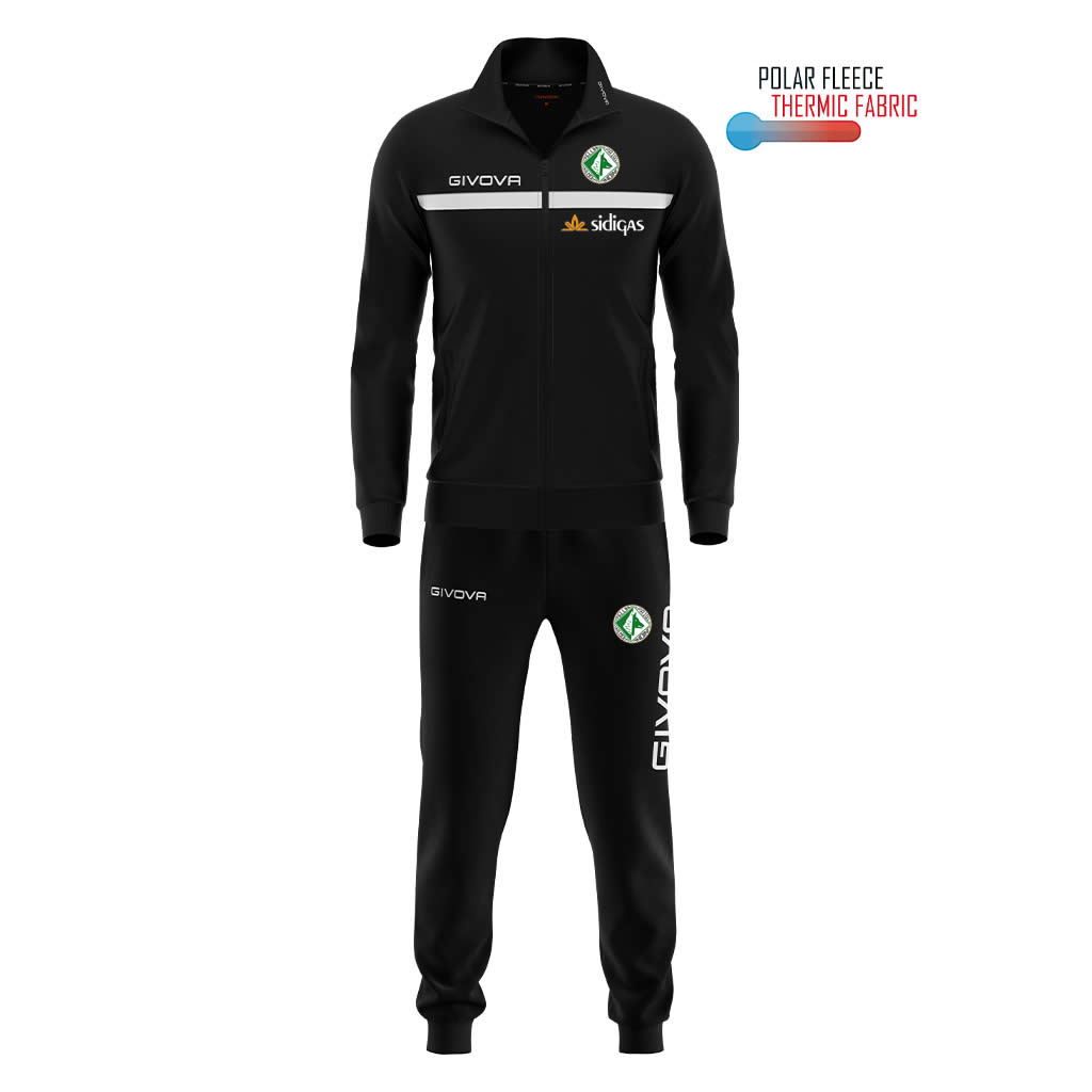 Giacca: Interno collo in costina; Loghi ricamati; Logo sul colletto; Tasche laterali; Polsini in costina; Fondo Giacca in costina; Pantaloni: Loghi ricamati; Tasche laterali; Fondo pantalone in costina; Zip nel fondo del pantalone;