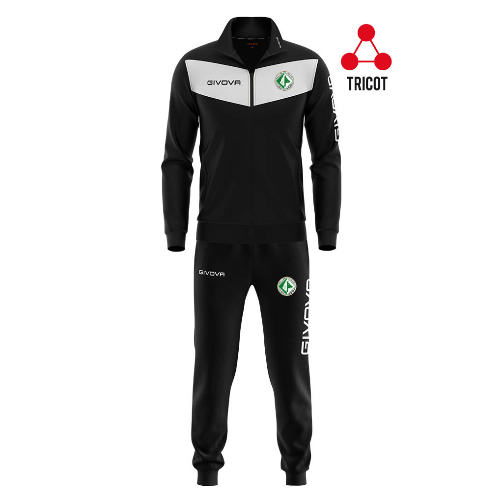 Tuta 100% Poliestere Triacetato 220 Gsm. Giacca: Zip intera; Loghi ricamati; Tasche laterali; Polsini in costina; Fondo giacca in costina; Pantaloni: Loghi ricamati; Tasche laterali; Fondo pantalone in costina;
