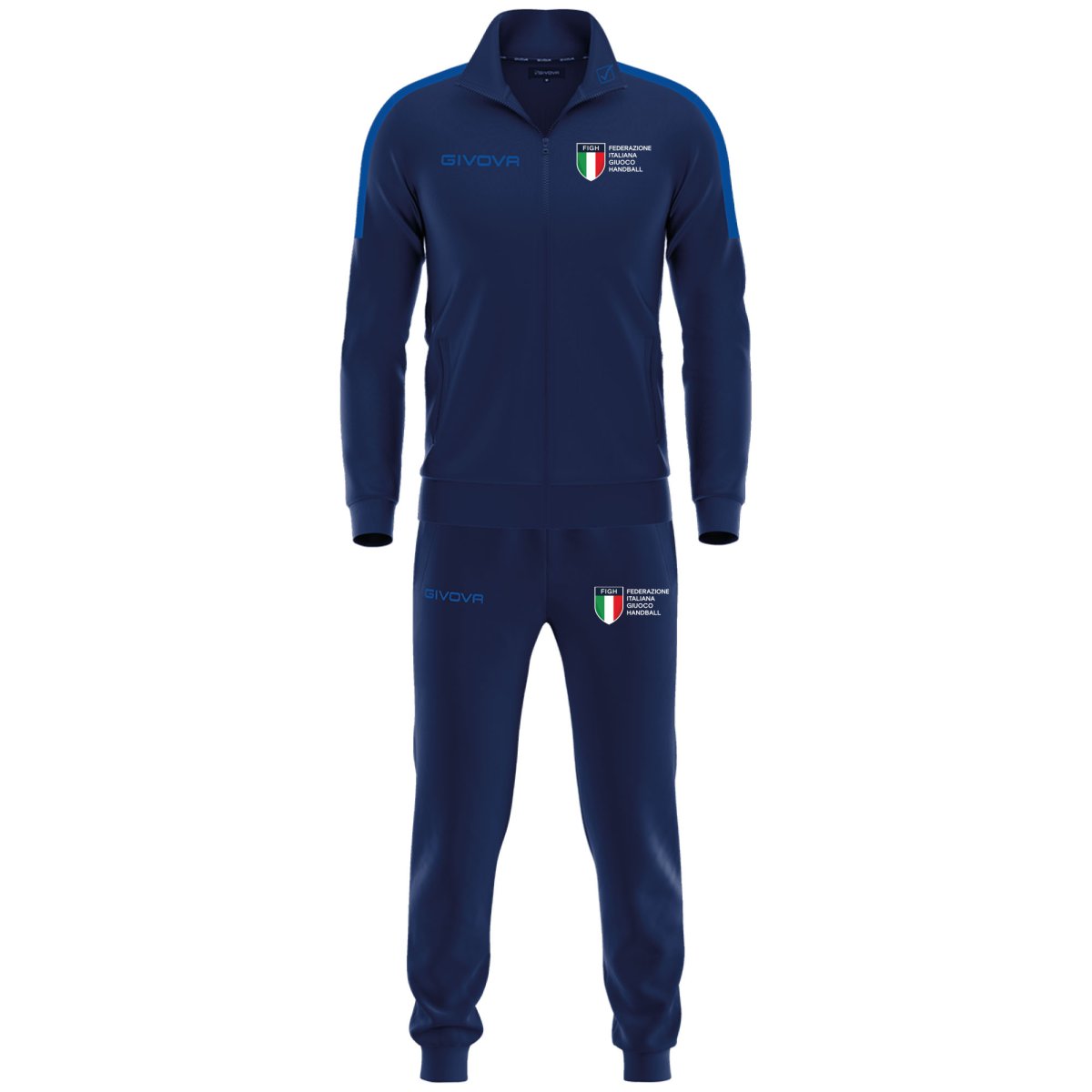Tuta 100% Poliestere Triacetato Giacca: Zip intera; Loghi ricamati; Tasche laterali; Polsini in costina; Fondo giacca in costina; Pantaloni: Loghi ricamati; Tasche laterali; Fondo pantalone in costina; Il tessuto TRICOT รจ caratterizzato dalla sua versatilitร  che lo rende adatto sia per il tempo libero che per l’allenamento.