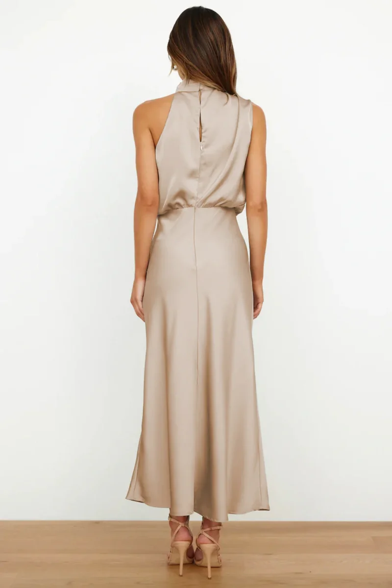 Vestra | Vestito Lungo in Raso con Scollo Halter Neck