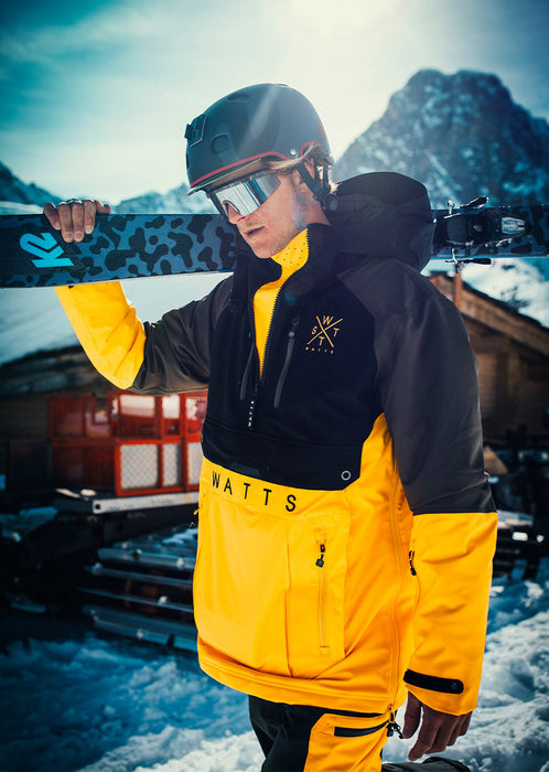 Luminosa e ricca di caratteristiche tecniche, laย giacca da sci Jump Yellowย ti accompagnerร nelle tue avventure sugli sci.ย La combinazione di giallo, nero e kaki conferisce alla giacca uno stile moderno.ย Questa giacca slip-on ti porterร comfort e calore.ย Il fondo della giacca e le maniche sono regolabili stringendo, la ventilazione sotto le ascelle e la membrana 4 Way-Strech Dupore-Xยฎ 20k/20k impermeabile e traspirante rendono la giacca tecnica e pratica.ย Amerai le sue numerose tasche con cerniere impermeabili per riporre i tuoi effetti personali.