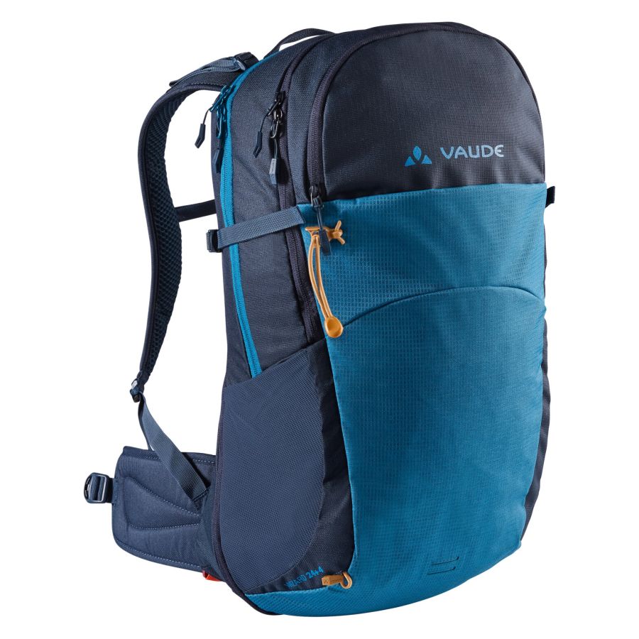 Uno zaino da trekking adattabile per gite di un giorno più confortevoli. Il sistema di sospensione Aeroflex Control intuitivo mantiene la schiena ben ventilata durante le salite sudate e scorre comodamente contro la schiena durante la discesa. Il sistema Shifting Back Length consente inoltre di adattare perfettamente la parte posteriore dello zaino alle dimensioni del busto. Un’estensione del volume con cerniera integrata e un pratico organizer nella tasca anteriore garantiscono flessibilità e ordine. Questo spazioso zaino è compatibile con il sistema di idratazione e dispone anche di tasche esterne in rete, una piccola tasca frontale, tasca sulla cintura e pratiche cinghie di compressione per un uso versatile. Il Wizard 24+4 è stato realizzato principalmente con materiale riciclato e presenta un’idrorepellenza ecologica Eco Finish senza fluorocarburi (PFC). L’etichetta VAUDE Green Shape è sinonimo di prodotti ecologici e funzionali realizzati con materiali sostenibili e certificati bluesign®.