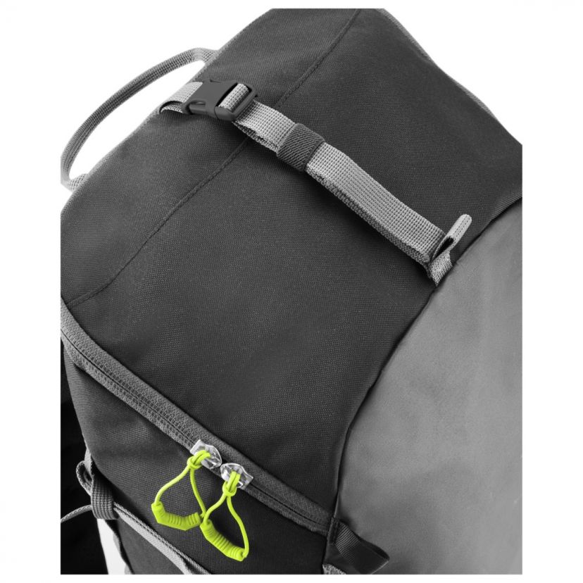 Il RUBI è uno zaino leggero e robusto per vie lunghe e arrampicata su big wall. Grazie al peso ridotto, alla cintura lombare e alle cinghie di compressione, non compromette mai la libertà di movimento sulla parete. La cinghia toracica facilmente regolabile e staccabile garantisce inoltre una vestibilità sicura. Il RUBI è dotato di due anelli per piccozza, quattro anelli per catena a margherita lungo la lunghezza dello zaino e una cinghia superiore per il trasporto di una corda. L’ampio scomparto principale con una tasca interna più piccola con cerniera è di facile accesso e piccoli oggetti importanti possono essere riposti anche nella tasca esterna con cerniera. Lo scomparto interno nella parte posteriore con uno scomparto per la sacca di idratazione, un piccolo gancio per sorreggerla e un canale elasticizzato per far passare il tubo per bere, può fungere anche da scomparto per laptop durante l’uso quotidiano.